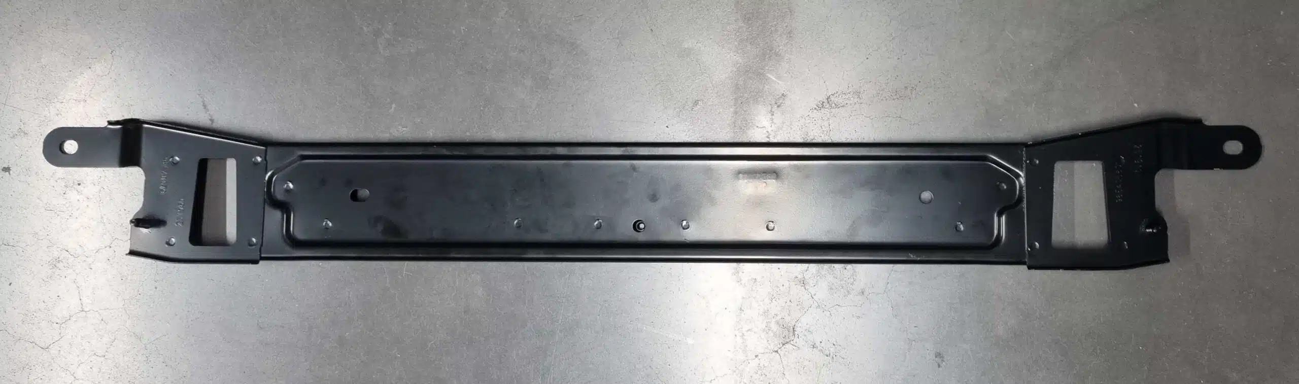 The marking is performed directly on the steel crossmember as a permanent, readable barcode.