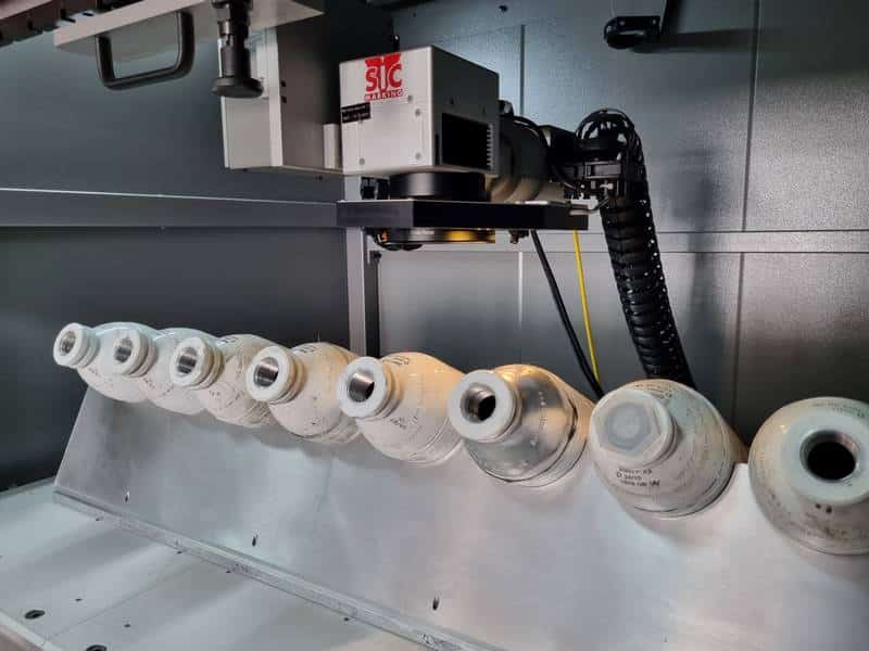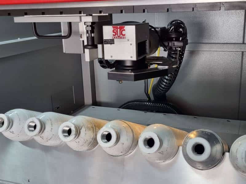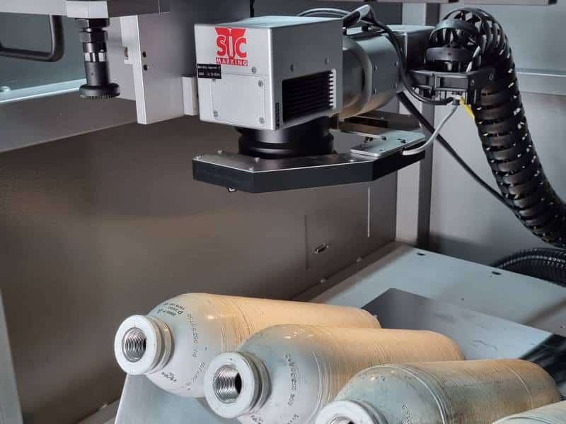 Gas cylinders require periodic retesting every 10 years. Upon successful completion of a test, the cylinder then requires remarking with various information including the date of the next retest due. Our laser marking machines are well suited for marking a large range of different sized cylinders