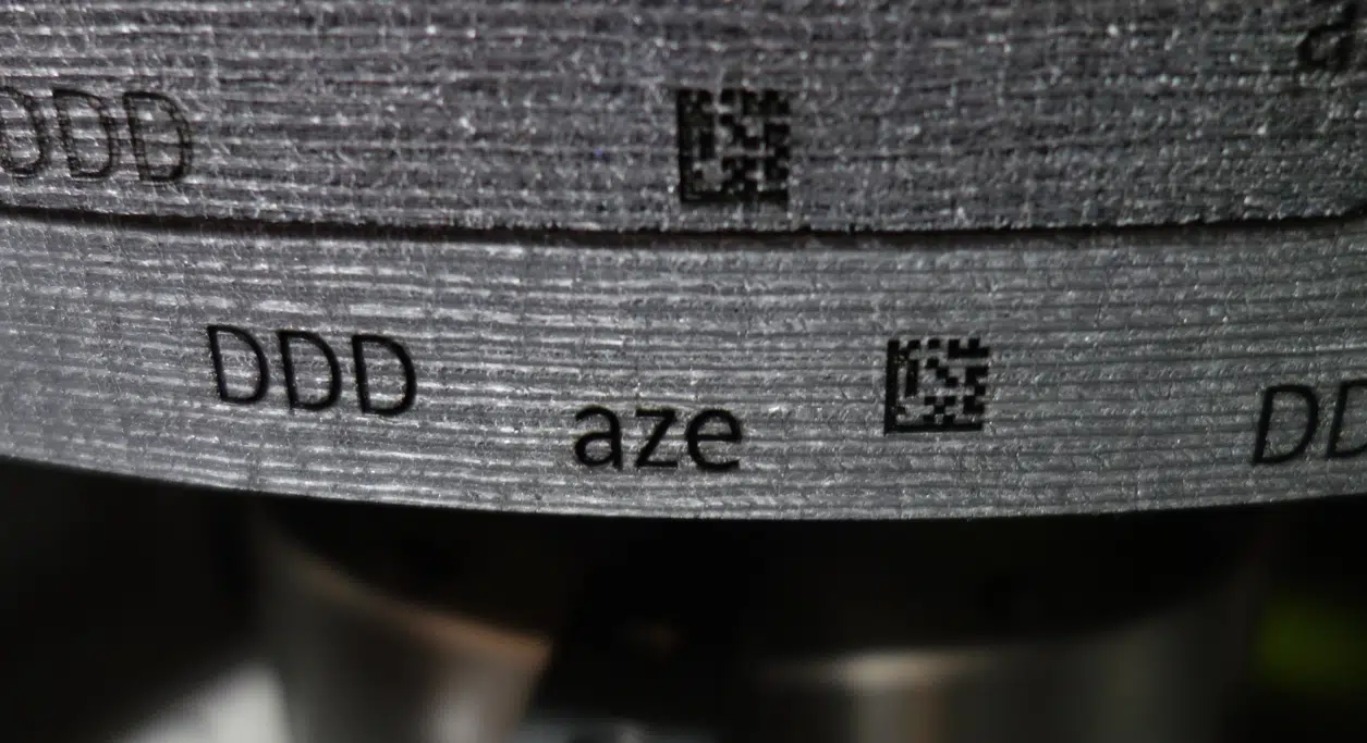 In particolare, il cliente desiderava sostituire la marcatura tramite lavorazione meccanica (alfanumerica) con la tecnologia laser e aggiungere un codice Datamatrix (alfanumerico e Datamatrix) per ottimizzare il proprio processo di produzione.