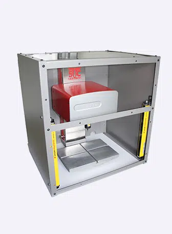 È adatta soprattutto per la marcatura di pezzi di piccole o medie dimensioni, che vengono posizionati direttamente sotto la testa di marcatura.