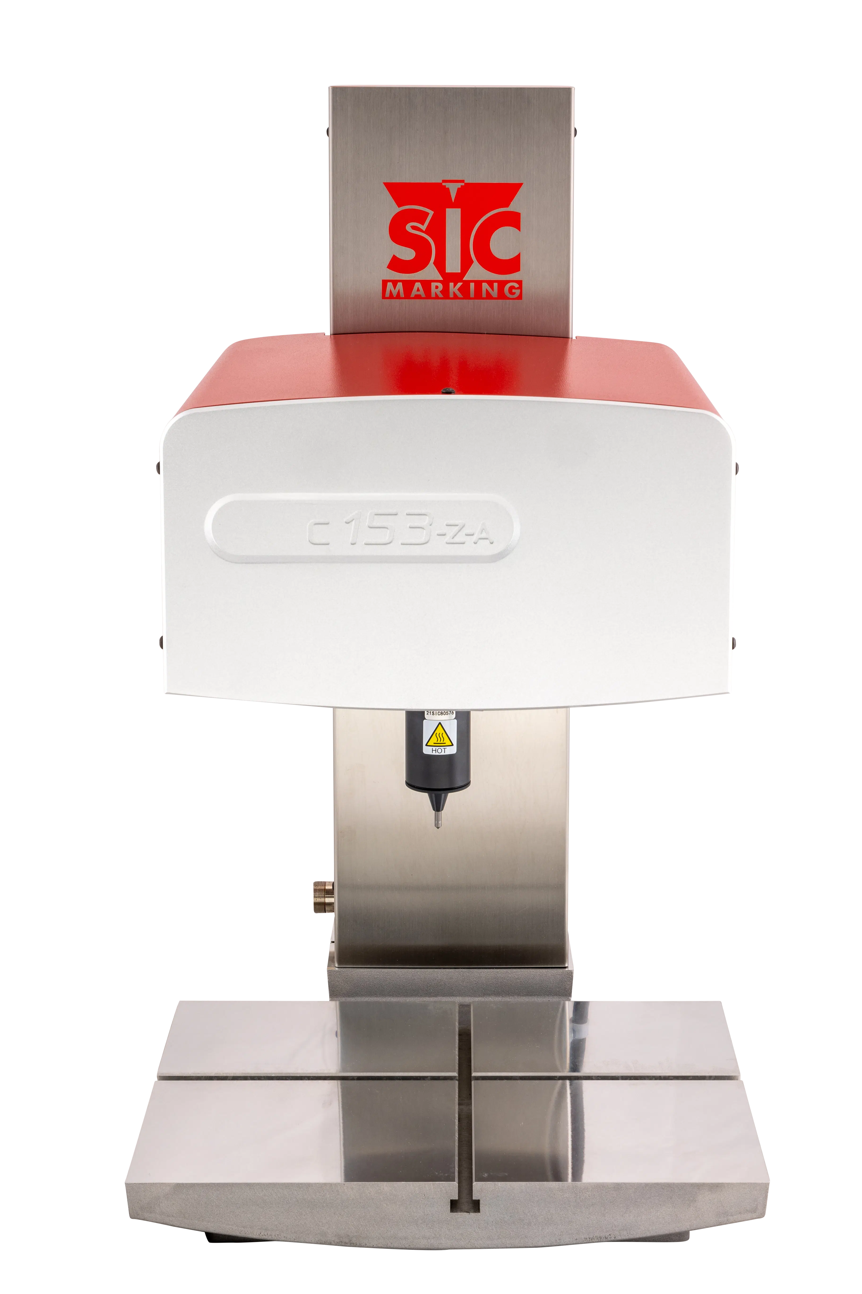 C153 ZA è una MACCHINA DI MARCATURA A MICROPERCUSSIONE A COLONNA con ASSE Z, cioè scorre su un asse verticale per regolare la posizione della testa di marcatura.